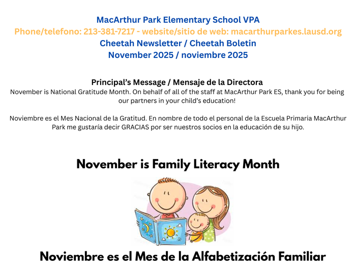 Reunión informativa sobre la alfabetización bilingüe - lunes, 11/17 @8:30am y 3:30pm, centro de padres & Zoom ID 834 8685 2206
